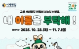 고창군 클릭뉴스2025. 10.24[클릭뉴스]재단법인 고창문화관광재단이 ‘고창 서해랑길 캐릭터 이름 공모 이벤트’를 진행한다. 이번 이벤트는 11월7일까지 진행하며, 전 국민 누구나 참여할 수 있다. 참여방법은 재단이 제공하는 온라인 신청 폼을 통해 캐릭터 이름과 소개를 간단히 작성하여 제출하면 된다. 이벤트 특전은 참여자 중 20명을 추첨하여 커피 모바일 쿠폰을 증정할 예정이며 발표는 11월 12일 재단 누리집 공지사항을 통해 발표한다. 또한, 최종 선정된 캐릭터 이름 응모자에게는 캐릭터 굿즈 세트가 12월 중 발송될 에정이다. 조창환 고창문화관광재단…