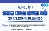 영광군 클릭뉴스2025. 10.23[클릭뉴스](재)영광군미래교육재단(이사장 장세일)이 군민의 교육비 부담을 줄이고 지역의 미래 인재를 육성하기 위한 2025년 2학기 대학생 등록금 지원사업을 시행한다. 지원 기준은 ▲보호자가 공고일(2025. 10. 23.) 기준 3년 이상 영광군에 주민등록을 두고 있는 가정 ▲30세 이하 대학생 ▲직전 학기 12학점 이상 이수하고, 평균 70점(C학점) 이상 취득 등 요건을 충족하여야 한다. 지원 대상자로 선정되면, 해당 학기 등록금 중 실제 등록금 납부액 기준으로 최대 200만 원까지 지원받을 수 있다. 신청은 2025…