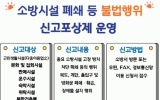 전라남도 클릭뉴스2025. 10.21[클릭뉴스]나주소방서는 소방시설에 대한 불법행위를 근절하고 자율적인 안전문화를 정착시키기 위해 연중 ‘불법행위 신고포상제’를 운영하고 있다고 21일 밝혔다. 신고 대상은 근린생활시설과 문화·집회시설, 판매시설, 운수시설, 숙박시설, 위락시설, 복합건축물 등 화재 발생 시 대형 인명피해가 우려되는 시설이다. 신고 가능한 불법행위는 ▲비상구 폐쇄(잠금장치 포함) ▲피난·방화시설 폐쇄 및 훼손 ▲피난 통로상 장애물 설치 ▲소방시설 전원·밸브 차단 및 고장 방치 등이다. 신고는 국민신문고 또는 나주소방서 누리집을 통해 접수할 수 있으…