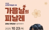순천시 클릭뉴스2025. 10.21[클릭뉴스]순천문화재단이 운영 중인 순천창작예술촌 2호 ‘김혜순 한복공방’에서는 오는 23일 오후 7시, 가을 감성을 담은 음악 공연 「가을날의 피날레」(부제: 김혜순 한복공방의 음악 이야기)를 순천시 청소년 수련관 야외무대(순천시 금곡길 20)에서 개최한다고 밝혔다. 이번 공연에는 국악과 대중음악을 넘나들며 활발히 활동 중인 트롯가수 신승태와 가수 이미리가 초청되어 무대를 꾸민다. 음악과 이야기가 함께하는 토크 콘서트 형식으로 진행되며, 한국적인 정서를 바탕으로 자신만의 독창적인 음악 세계를 선보이는 신승태의 공연은 감성적…