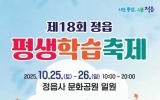정읍시 클릭뉴스2025. 10.21[클릭뉴스]시민들이 한 해 동안 갈고닦은 배움의 성과를 나누는 ‘제18회 정읍 평생학습축제’가 오는 25일과 26일 이틀간 정읍사문화공원 일대에서 열린다. 올해 축제는 다채로운 무대 공연과 온 가족이 함께 즐길 수 있는 풍성한 체험 프로그램으로 채워질 예정이다. 지난 2006년 평생학습도시로 선정된 이후 매년 열리고 있는 이 축제는 평생학습동아리, 유관기관·단체 등에서 활동하는 시민들이 주인공이 되어 배움의 결과를 공유하는 뜻깊은 자리다. 행사는 25일 오전 10시 개막식을 시작으로, 오카리나 녹두 등 15개 팀이 준비한 …