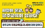 광주광역시 클릭뉴스2025. 10.19[클릭뉴스]광주시교육청시민협치진흥원은 오는 29일 오전 10시부터 2시간 동안 본원 소강당에서 시민 소통 행사 ‘시민이 묻고, 광주교육이 답하다’를 운영한다. 이번 행사는 지난 7월 ‘고입·대입 진학’ 주제를 시작으로, 8월 ‘AI 디지털 교육’, 9월 ‘학교폭력 예방 및 학생 마음·사회 정서’ 등 순으로 진행됐으며, 29일에는 올해 마지막으로 ‘국제교육’을 주제로 열린다. 마지막 행사 역시 시민들의 궁금증을 해소하고 공감대를 형성하는데 주력할 예정이다. 시교육청 세계민주시민교육과 장학관, 장학사가 참여해 국제교육 핵심 정책인…