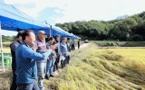 무주군 클릭뉴스2025. 10.15[클릭뉴스]무주군이 벼 작목의 경쟁력 강화를 위해 품종 다변화를 시도하고 있는 가운데 지난 15일에는 안성면 장기리 일원에서 ‘신동진1’ 생육평가회를 가졌다. 이날 평가회는 해당 품종의 생육 상태와 병해충 저항성, 품질 등을 종합적으로 관찰하고 ‘신동진’과 ‘참동진’ 등 다른 품종과의 비교를 통해 보급 확대 방안을 모색한다는 취지에서 마련된 것으로, 황인홍 무주군수를 비롯한 6개 읍·면 이장, 그리고 지역 내 벼 재배농가 등 60여 명이 참석해 ‘신동진1’의 주요 특성과 전시포 운영 현황을 공유하고 생육 상황을 직접 점검했다…