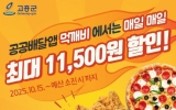 고흥군 클릭뉴스2025. 10.15[클릭뉴스]고흥군은 군민의 외식비 부담을 줄이고 소상공인 경영지원을 위해 15일부터 공공배달앱 ‘먹깨비’에서 외식비 ‘반값’ 이벤트를 진행한다고 밝혔다. 이번 먹깨비 외식비‘반값’ 행사는 고흥군이 ▲매일 5,000원 쿠폰과 ▲배달비 1,500원을 지원하고, 농림축산식품부가 ▲매일 5,000원 할인을 추가로 제공해 최대 11,500원의 할인 혜택을 받을 수 있다. 자세한 사항은 먹깨비 앱에서 확인할 수 있으며, 이벤트는 예산이 소진될 때까지 선착순으로 진행된다. ‘먹깨비’는 국내 배달앱 중 중개수수료(1.5%)가 가장 낮은 공공…