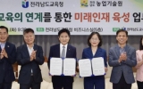 교육 클릭뉴스2025. 10.14[클릭뉴스]전라남도교육청은 10월 14일 청사 5층 비지니스실에서 전라남도 농업기술원(원장 김행란)과 ‘농업과 교육의 연계를 통한 미래인재 육성 업무협약’을 체결했다. 이번 협약은 농업·농촌의 다양한 자원을 교육과 연계해 학생들이 체험 중심으로 배우고, 생태 감수성과 창의 역량을 키울 수 있도록 지원하기 위해 마련됐다. 이번 협약에 따라 양 기관은 ▲ 농촌교육농장과 치유 농장을 활용한 체험교육 확대 ▲ 늘봄학교 운영과 연계 가능한 프로그램 제공 ▲ 생태 기반 창의 교육, 진로, 창업 체험처 발굴 및 정보 제공 ▲ 지속가능한 농촌…