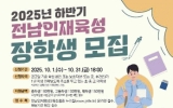 전라남도 클릭뉴스2025. 10.13[클릭뉴스]전라남도와 전남인재평생교육진흥원은 실질적인 교육기회 보장과 미래인재로의 성장, 지역 정착을 지원하기 위한 2025년 하반기 전남인재육성 장학생을 오는 31일까지 모집한다. 신청 대상은 공고일 기준 학생 본인 또는 보호자(부 또는 모, 후견인)가 1년 이상 계속해서 전남도에 주민등록이 돼있는 초·중·고등학생과 대학생, 공고일 기준 전남도에 1년 이상 체류 중이며 남은 체류 기간이 6개월 이상인 외국인 유학생이다. 선발분야는 ▲전남인재 장학금 ▲전남정착 장학금 ▲특별지정 장학금 총 3개의 분야 15종이며, 장학생 868명…