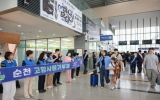 순천시 클릭뉴스2025. 10.02[클릭뉴스]순천시는 2일 순천역 광장에서 추석을 맞아 고향을 방문하는 귀성객과 관광객을 대상으로 환영 행사와 시정 홍보활동을 펼쳤다. 이번 행사는 일류순천시민운동본부, 자생단체, 읍면동 주민 등 500여 명이 함께 참여한 가운데 귀성객 환영 공연과 자원봉사자들의 차나눔으로 고향을 찾은 귀성객들에게 넉넉한 한가위의 정을 전했다. 이날 행사에서는 여수MBC 순천 이전 협약, 코스트코 입점 확정 등 지역의 호재를 알리며, 순천의 3대 경제축(문화·우주·바이오 산업)을 기반으로 ‘치유의 도시 순천’으로 도약하는 미래 비전을 공유하는 계…