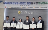 남원시 클릭뉴스2025. 10.02[클릭뉴스]남원시는 이번 9월 30일 남원농협에서 농협쌀조합공동사업법인 설립을 위해 남원시(남원시농업기술센터소장), 농협중앙회남원시지부, 남원농협, 춘향골농협, 운봉농협, 지리산농협과 업무협약식을 개최했다. 이번 협약식의 목적은 지역 농업의 경쟁력을 높이고 쌀 산업 활성화를 위해 관내 4개농협이 협력하여 농협쌀조합공동사업법인을 설립하기 위함이다. 협약식에 참석한 남원시농업기술센터소장과 농협 조합장들은 “이번 협약을 통해 지역 농업인들의 소득 증대와 쌀 산업의 지속 가능한 발전을 기대한다”며 “앞으로도 상호 협력하여 남원시 농업의…