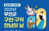 무안군 클릭뉴스2025. 10.02[클릭뉴스]전남 무안군은 오는 11월 7일 목포대학교 남악캠퍼스 글로컬스타트업센터 컨벤션홀에서 개최하는 『2025년 무안군 구인·구직 만남의 날』행사에 참여할 기업을 모집한다. ‘비상하는 일자리’라는 주제로 무안군이 주최하고 전남인력개발원이 주관하는 이번 행사는 구직자와 관내 우수기업 간 만남을 통해 구직자에게 취업기회를, 구인업체에는 인재채용의 기회를 제공하기 위해 열리는 원스톱 일자리 지원사업의 일환이다. 군은 행사 당일 현장채용관 15개사(간접참여 15개)와 함께 취업컨설팅, 입사지원서 컨설팅, 취업·진로상담, 이력서 사진…