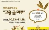 고흥군 클릭뉴스2025. 09.29[클릭뉴스]고흥군과 고흥군문화도시센터는 오는 10월부터 11월까지 '성인 글쓰기 교실: 고흥 글마루'를 운영한다고 밝혔다. 이번 프로그램은 고흥의 중장년층을 대상으로, 평범한 일상 속 경험을 글로 풀어내고 서로의 이야기를 나누는 과정을 통해 자존감과 성취감을 높이는 것을 목표로 한다. ‘고흥 글마루’는 총 6주 과정으로 ▲자기 이름 삼행시 짓기 ▲어린 시절 기억과 가족 이야기 ▲추억의 음식 글쓰기 ▲마음속 인물에게 편지 쓰기 등으로 구성된다. 마지막 시간에는 그동안 작성한 글을 다듬어 낭독하고, 이를 하나의 소책자로 엮는다. …
