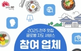 전주시 클릭뉴스2025. 09.29[클릭뉴스]전주시가 외국인 관광객들이 맛의 도시 전주에서 미식여행을 만끽할 수 있도록 전주한옥마을과 전통시장 일대 대표 맛집들의 글로벌 지도 서비스 등록을 지원키로 했다. 시는 전주를 찾는 외국인 관광객들이 지역 음식점을 더욱 편리하게 이용하고, 음식점들의 글로벌 경쟁력을 강화하기 위해 ‘2025년 전주 맛집 글로벌 지도 서비스 지원사업’을 추진한다고 29일 밝혔다. 이 사업은 전주의 특색 있는 맛집을 외국인 관광객에게 효과적으로 알리기 위한 것으로, 시는 오는 10월 14일까지 등록업체 접수를 진행할 계획이다. 주요 사업 내…