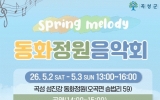 임실군 클릭뉴스2026. 04.08[클릭뉴스]전남 곡성군은 오는 5월 2일부터 5월 3일까지 2일간 곡성읍 묘천리 일원에 조성된 동화정원에서 ‘봄의 멜로디’ 음악회를 개최한다고 8일 밝혔다. 이번 음악회는 오후 1시부터 4시까지 진행되며 봄의 정취가 가득한 정원 속에서 음악과 체험, 휴식을 함께 즐길 수 있는 복합문화 프로그램으로 운영된다. 동화정원은 지난해 가을 황화코스모스가 장관을 이루며 인생사진 명소로 떠오른 곳으로, SNS를 통한 자발적 홍보로 많은 관광객의 발길을 이끌었다. 올 봄에는 초록빛 밀밭을 비롯해 수레국화, 양귀비, 안개꽃 등이 어우러져 한…