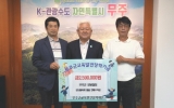 나주시 박기철 기자2025. 09.25[클릭뉴스]한국양봉협회 무주군지회가 지난 25일 (재)무주군교육발전장학재단에 장학금 259만 원을 기탁했다. 이날 기탁한 장학금은 제29회 무주반딧불축제에서 농특산물 판매장을 운영하면서 얻은 벌꿀 판매 수익금으로 알려져 훈훈함을 더하고 있다. 송재철 지회장은 “지역 대표 축제에서 얻은 수익금인 만큼 의미 있는 일에 쓰고 싶어 회원들이 마음을 모았다”라며 “양봉협회 회원들이 무주의 청정 환경에서 직접 채취한 고품질 벌꿀을 소개·판매하고 얻은 수익금을 지역사회에 환원한다는 점에서 큰 보람을 느낀다”라고 밝혔다. 이어 “…