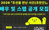강진군 클릭뉴스2026. 02.24[클릭뉴스](재)강진군문화관광재단은 2026년 ‘조선을 만난 시간(조만간)’ 프로젝트 세 번째 이야기, 강진 주민이 만든 창작뮤지컬 ‘병영상인의 노래’에 참여할 배우 및 스태프를 공개 모집한다고 24일 밝혔다. 이번 작품은 강진 병영시장을 배경으로 병영상인의 역사와 상도를 담은 주민참여형 공연으로, 마당놀이와 뮤지컬을 결합한 현장 소통형 무대로 제작된다. 2019년 시작된 ‘조만간 프로젝트’는 주민이 직접 배우로 참여하는 강진의 대표 문화관광 콘텐츠다. ‘장사의 신’, ‘장사의 법칙’에 이어 올해 ‘병영상인의 노래’까지 병영상인…