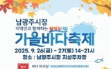 동구 클릭뉴스2025. 09.24[클릭뉴스]광주 동구는 오는 26~27일 이틀간 남광주시장 공영주차장 일원에서 ‘활력장! 가을 바다 축제’를 개최한다고 밝혔다. 남광주시장 문화관광형시장 육성사업 일환으로 열리게 된 이번 행사는 광주 대표 수산물시장인 남광주시장을 전국에 알림과 동시에 지역 대표 축제로 육성하기 위해 마련됐다. 26일 오후 2시부터 농악놀이, ‘수산물 가요제’ 예선전, 전어잡이 체험 등 식전 행사가 펼쳐지며, 오후 5시 개막식을 시작으로 본격적인 행사가 열린다. 오후 6시부터는 가을 별미가 가득한 ‘바다 야시장’을 운영, 시민들의 발길을 …