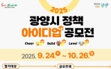 [클릭뉴스]광양시는 9월 24일부터 10월 26일까지 ‘2025년 하반기 아이디어 공모전’을 실시한다고 밝혔다. 공모전 명칭은'광양시 정책 아이디업(UP) 공모전'으로, 시민들의 삶을 응원하고(Cheer up), 더 나은 정책을 함께 만들어(Build up), 광양시가 한층 더 높이 도약하는(Level up) 계기를 마련하고자 기획됐다. 공모 주제는 ▲주민생활, 경제활동에 불합리한 민생규제 개선 방안 ▲AI·공공빅데이터 활용 시책 ▲기타 광양시 발전을 위한 정책 아이디어다. 지역 상관없이 누구나 응모할 수 있으며, 참여 희망…