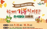남원시 클릭뉴스2025. 09.19[클릭뉴스] 보성군은 다가오는 추석을 맞아 고향사랑기부제 활성화를 위해 ‘함께 기부할까요? 추석맞이 이벤트’를 오는 9월 22일부터 10월 31일까지 진행한다고 밝혔다. 이번 이벤트는 군민과 출향인, 지인들이 함께 참여할 수 있도록 추천인과 기부자 모두에게 경품을 제공하는 방식으로 운영된다. 친구·가족·지인 등에게 보성군 고향사랑기부제를 추천하고, 추천을 받은 사람이 실제 기부에 참여하면 추천인과 기부자 모두에게 인기 답례품이 주어진다. 참여 방법은 이벤트 기간 내에 추천인과 추천을 받은 기부자의 정보를 이메일 …