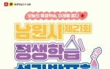 남원시 클릭뉴스2025. 09.19[클릭뉴스]남원시은 오는 26일 사랑의 광장에서 ‘오늘의 평생학습, 미래를 열다’를 주제로 제21회 남원시 평생학습 성과발표회를 개최한다. 이번 행사는 한 해 동안 갈고닦은 학습 성과를 시민들과 생생히 공유하고 무대에서 실력을 선보이는 자리로 남원시의 대표적인 평생교육 축제다. 민·관·학이 협력해 이룬 성과를 자랑하고 나누는 뜻깊은 장이 될 전망이다. 행사 당일에는 성인문해 우수작 시낭송을 시작으로, 지난 1년간 갈고닦은 실력을 선보이는 14개 평생학습 공연팀의 다채로운 무대가 펼쳐진다. 또, 30여 개 체험부스와 50여…