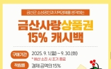 충북 클릭뉴스2025. 09.18[클릭뉴스]금산군은 금산사랑상품권 9월 캐시백 적립률을 기존 10%에서 15%로 확대 적용하고 있다고 밝혔다. 이번 할인율 상향은 정부의 지역화폐 발행 확대 정책에 발맞춘 조치로 군민 가계 부담 완화와 침체한 지역경제 활성화를 목표로 한다. 금산사랑상품권은 스마트폰 앱 지역상품권 착(chak)을 통해 상품권을 구매한 뒤 가맹점에서 결제가 가능하며 지역 음식점·병원·학원·미용실 등 약 2900개 가맹점에서 사용할 수 있다. 캐시백 적립은 종이 상품권은 적용되지 않으며 모바일, 카드 상품권에서만 이뤄진다. 군은 이번 조치가 주…