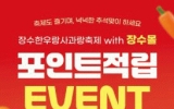 장수군 클릭뉴스2025. 09.17[클릭뉴스] 장수군은 장수군 농특산물 온라인 쇼핑몰 ‘장수몰’에서 제19회 장수 한우랑사과랑 축제 기간인 18일부터 21일까지 나흘간 장수몰 포인트 적립 이벤트를 운영한다고 밝혔다. 이번 이벤트는 축제장을 찾은 방문객들이 사과마당과 농특산물 판매전에서 농특산물을 구매한 뒤 안내부스로 영수증을 제시하면 사은품 또는 장수몰 포인트를 받을 수 있는 행사다. 구매 금액은 사과마당과 농특산물 판매전 내 전체 금액을 합산해 인정하며, 5만원 이상 구매 시 타포린백 또는 보온보냉백 중 한 가지 사은품을 증정하고, 10만원 이상 구매하면 …