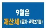 익산시 클릭뉴스2025. 09.12[클릭뉴스]전라남도 나주시는 토지 및 주택 소유자를 대상으로 9월 정기분 재산세(토지·주택2기분) 8만 1968건에 215억 원을 부과했다고 12일 밝혔다. 이번에 부과된 재산세는 토지분 7만 6437건에 198억 원, 주택 2기분은 5531건에 17억 원이며 납부 기한은 오는 9월 30일까지다. 재산세는 소유 기간과 관계없이 과세기준일인 6월 1일 현재 토지 및 주택 소유자에게 부과된다. 다만 주택분 재산세가 20만 원 이하면 7월에 전액 부과되며 20만 원을 초과하면 7월과 9월에 각각 절반씩 분할 부과된다. 납부는 전국 …
