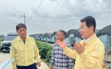 부안군 클릭뉴스2025. 09.10[클릭뉴스]부안군은 권익현 부안군수가 지난 7일 새벽부터 쏟아진 집중호우로 인해 일부 시설하우스가 침수되는 피해가 발생하자 피해 현장을 방문해 농가를 위로하고 복구 지원 방안을 논의했다고 밝혔다. 이번 집중호우로 부안읍 일대와 계화면 일부 지역에 빗물이 범람하면서 감자, 애호박 농가 등 다수의 시설하우스가 물에 잠겼다. 특히 장시간 이어진 강우로 배수로가 제 기능을 하지 못해 작물 뿌리 부분이 침수되어 생육에 심각한 피해가 우려되는 상황이다. 권익현 부안군수는 이날 직접 현장을 찾아 피해 농가들을 위로하며 “예기치 못한 기상…