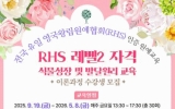 순천시 클릭뉴스2025. 09.10[클릭뉴스]순천시는 정원원예와 식물학 분야에서 세계적으로 권위를 인정받는 영국왕립원예협회의 ‘RHS 레벨2 자격 식물성장 및 발달원리 교육(RHS Level 2 Certificate in the Principles of Plant Growth and Development)’ 이론 과정 수강생을 모집한다고 밝혔다. 순천만국가정원은 지난 2018년 정원의 역사라 불리는 영국 RHS와 영연방 국가 외 해외 최초로 협약을 체결해 RHS 국제교육센터로 지정됐으며, 지금까지 총 21명의 자격 취득자를 배출하며 차별화된 해외 인증 정원교육의 …