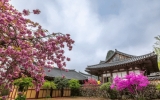곡성군, 섬진강기차마을 겹벚꽃 만개 ‘절정’