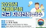 군산시 클릭뉴스2025. 09.08[클릭뉴스]군산시가 일반음식점을 대상으로 9일부터 23일까지 2025년 모범음식점 신청·접수를 받는다. 신청은 일반음식점으로 영업신고 후 6개월 이상 경과한 업소면 가능하다. 모범음식점 지정조건은 ▲좋은 식단 실천 ▲덜어먹는 식문화 등 위생관리상태 우수 업소로 1차 서류심사, 2차 현지 조사 평가, 3차 음식문화개선운동추진위원회의 심의를 거쳐 오는 11월에 최종 지정된다. 군산시는 모범음식점 지정 업소에 대하여 ▲모범음식점 지정 표지판 부착 ▲영업 시설개선자금 우선 융자 ▲상수도 사용요금 30% 감면 ▲각종 위생용품 등의 혜…
