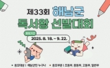 장흥군 클릭뉴스2025. 09.04[클릭뉴스]해남군립도서관은 지역 주민의 독서 활동을 장려하고 책 읽는 문화 확산을 위해 제33회 해남군 독서왕 선발대회를 개최한다. 이번 대회는 초등부, 중등부, 고등부, 일반부로 나뉘어 진행된다. 참가자는 전라남도립도서관 및 해남군립도서관에서 선정한 2025 올해의 책 8권 중 부문에 맞게 도서를 읽고 독후감을 작성해 제출하면 된다. 올해의 책 목록은 다음과 같다 ▲일반 '고통 구경하는 사회' '나는 다정한 관찰자가 되기로 했다' '여기는 괜찮아요' '작은 빛을 따라서' ▲청소년 '열다섯에 곰이라니' '율의 시선' ▲어린이 '…