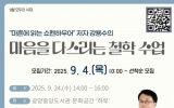 광양시 클릭뉴스2025. 09.04[클릭뉴스]광양중앙도서관은 9월 24일 오후 2시 문화공간 ‘하루’에서 '모두의 서재' 세 번째 강연을 개최한다. 이번 강연에는 철학자이자 작가인 강용수가 초청돼 ‘마음을 다스리는 철학 수업’을 주제로 시민들과 만난다. '모두의 서재'는 각계 전문가들이 연구와 경험을 바탕으로 세상을 바라보는 폭넓은 시각을 시민들과 공유하는, 광양중앙도서관의 대표 인문학 프로그램이다. 일상의 고민과 질문에 깊이 있는 통찰을 나누는 장으로 자리매김해 왔으며, 지난 6월 열린 두 번째 강연에서는 남인숙 작가가 ‘어른의 자존감’을 주제로 강연해 …