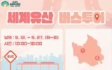순천시 클릭뉴스2025. 09.03[클릭뉴스]순천시와 순천시 세계유산보존협의회는 오는 12일부터 27일까지 ‘2025 세계유산축전 선암사, 순천갯벌’ 버스투어 프로그램을 운영한다고 밝혔다. 이번 버스투어는 세계문화유산 선암사와 세계자연유산 순천갯벌을 하루에 모두 탐방하는 일정으로 매주 화요일부터 토요일까지 오전 10시 10분, 순천역 시티투어 버스 승강장에서 출발한다. 첫 행선지인 천년 고찰 선암사에서는 사찰 순례와 AR․VR 등 실감형 공연이 결합된 ‘만일(萬日)의 수행’ 프로그램을 체험할 수 있다. 투어 참여자는 일주문에서 시작해 대웅전, 불조전, 무우전…