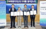 남원시 클릭뉴스2025. 09.02[클릭뉴스]전북특별자치도가 도민이 함께 만든 발전기금을 바탕으로 미래 인재 육성을 위한 장학사업을 추진한다. 도는 2일 도청에서 NH농협은행 전북본부, 초록우산 어린이재단 전북지역본부와 함께 '전북특별자치도 사회협약 제1호'로 ‘미래동행 장학사업’ 협약을 체결했다고 밝혔다. 이번 협약은 전북자치도가 사회협약위원회를 통해 논의한 첫 결실로, 도민 참여로 조성된 기금을 공익 장학사업으로 추진한 사례다. 협약식에는 김관영 전북특별자치도지사, 강태창 사회협약위원회 위원장, 김성훈 NH농협은행 전북본부장, 구미희 초록우산 전북지역본부장…