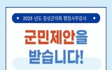 김제시 클릭뉴스2025. 08.29[클릭뉴스]장성군의회는 오는 9월 2일부터 10월 2일까지 30일간 ‘2025년도 행정사무감사 군민제안 창구’를 운영한다고 밝혔다. 제안 대상은 ▲군 주요 시책과 사업의 개선·건의사항 ▲위법·부당한 행정 사례 등이다. 단, 개인 사생활 침해, 단순 숙원사업, 재판·수사 중인 사건, 명예훼손 우려가 있는 사항, 익명 제안 등은 제외된다. 이번에 접수된 내용은 장성군의회 행정사무감사 대상에 반영하거나 참고자료로 활용될 예정이며, 군민제안은 방문접수 또는 전화, 팩스 및 우편이나 장성군의회 누리집을 통해 가능하다. 심민섭 의장은“군…