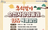 교육 클릭뉴스2025. 08.29[클릭뉴스]순천시는 추석명절을 맞아 9월 한 달간 순천사랑상품권 13% 특별할인 판매를 실시한다고 밝혔다. 이번 할인판매는 명절 비용 부담을 줄여 서민 가계에 실질적인 도움을 주고 지역 소상공인 및 골목상권의 소비를 촉진하기 위해 추진된다. 특히 민생회복 소비쿠폰과 함께 지역경제 활성화를 위한 마중물 역할을 할 것으로 기대된다. 순천사랑상품권은 지류형과 모바일형(카드·QR)으로 발행되며, 지류형은 농협은행, 순천농협, 축협, 원협, 낙협 등 관내 5개 은행의 47개 지점에서 구매할 수 있다. 모바일형은 ‘지역상품권 cha…