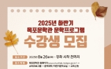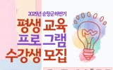 순창군 클릭뉴스2025. 08.26[클릭뉴스]순창군이 오는 9월 5일까지‘2025년 하반기 평생교육 프로그램’수강생을 선착순 모집한다. 이번 평생교육 프로그램은 군민들의 다양한 요구를 반영해 ▲뜨개질 ▲방송댄스 ▲하모니카 ▲어반스케치 ▲타로카드 ▲바레필라테스 ▲ESG친환경공예 ▲K-아트공예 ▲라탄공예 ▲정리수납전문가 1급 ▲화훼조형지도사 ▲커피바리스타 1급 과정 ▲AI세상열기 ▲실전여행영어까지 총 14개 과목으로 구성됐다. 과목별 모집 인원은 12~15명이며, 전체 정원은 264명이다. 단, 과목별 신청자가 과반수에 미치지 못할 경우 폐강될 수 있다. 신청은 …