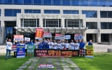 [클릭뉴스]완주군의회는 22일 전라북도청 앞에서 ‘완주·전주 통합 반대’ 캠페인을 열고, 군민과 함께 완주의 자치와 미래를 지켜내겠다는 강한 의지를 밝혔다. 지난 20일 전주시청에서 열린 통합 반대 캠페인에 이어, 이날 행사에도 유 의장을 비롯한 군의원 11명 전원과 통합 반대 단체 회원 등 30여 명이 참석해 완주의 자치와 미래를 수호하겠다는 뜻을 모았다. 참석자들은 ‘완주의 희생만 강요하는 통합 결사반대’, ‘완주군민의 이름으로 김관영 파면한다!’ 등의 구호가 적힌 피켓과 현수막을 들고 도청을 찾은 도민들과 직접 만나 통합 …