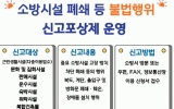 김제시 클릭뉴스2025. 08.21[클릭뉴스]나주소방서는 시민의 안전을 위협하는 소방시설 불법행위 근절을 위해 ‘소방시설 불법행위 신고포상제’를 운영하고 있다고 밝혔다. 신고포상제는 소방시설 폐쇄․차단이나 소방시설의 정상적인 작동을 방해하는 행위를 시민이 직접 신고하면 포상금을 지급하는 제도로, 시민의 자발적인 참여를 통해 안전한 화재 대응 환경을 조성하는 것을 목표로 한다. 주요 신고 대상은 ▲비상구 폐쇄 및 잠금 행위▲피난통로․계단․방화문 장애물 적치▲소화기 등 소방시설을 고의로 훼손하거나 작동에 지장을 주는 행위 등이다. 신고자는 사진이나 동영상 등 증…
