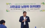광양시 클릭뉴스2025. 08.20[클릭뉴스]전북특별자치도의회 임종명 의원(남원2)은 지난 19일 늦은 오후 지역주민들과 함께 남원의 발전과 미래를 모색하기 위한 소통의 시간을 가졌다. 이번 강연은 임종명 의원의 학생운동‧노동현장‧기업활동‧시민운동을 거쳐, 생활정치인에 이르기까지의 경험을 바탕으로 기후위기와 지역소멸 위기 속에서 정치와 시민운동이 나아가야 할 방향을 시민들과 직접 소통하는 자리로 시민사회로부터 적극적인 지지와 호응을 받고 있다. 임종명 의원은 “그동안 지리산 노래패 단장과 남원시 섬진강 수해피해대책위 부위원장으로 활동해 왔으며, 평화의 소녀상 건…