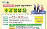 문화 클릭뉴스2025. 08.14[클릭뉴스]군산시 여성사회대학이 오는 8월 19일부터 22일까지 하반기 프로그램 수강생을 선착순 모집한다. 이번 프로그램은 ▲직업훈련 교육(패션 양재 등 5개) ▲정보화 교육(기초엑셀 등 2개) ▲생활문화 교육(생활집밥요리 등 2개) ▲교양 교육(보태니컬아트와 색연필화 등 13개) ▲건강 교육(손발지압 건강찾기 등 6개) ▲야간 교육(통기타초급 등 3개) 분야별 총 31개 강좌로 운영되며, 기초엑셀 등 18개 강좌는 남성 회원도 참여 할 수 있다. 교육 기간은 9월 1일부터 12월 19일까지 총 15주(공휴일 제외)이며, 수강료…