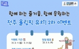 전라북도 클릭뉴스2025. 08.11[클릭뉴스]전북특별자치도가 2036 전주 하계올림픽 유치 분위기를 한층 끌어올리기 위해 국제올림픽위원회(IOC) 글로벌 캠페인 ‘레츠무브(Let’s Move)’와 연계한 대국민 SNS 참여 이벤트 2차 캠페인을 시작했다. 이번 행사는 8월 11일부터 31일까지 전국 누구나 2인 이상이 함께 움직이는 모습을 사진이나 영상으로 촬영해 개인 SNS에 게시하고, 필수 해시태그(#LETSMOVE #전주올림픽유치응원 #OLYMPICDAY #JEONJU)를 달면 참여할 수 있다. 스트레칭, 산책, 댄스, 러닝 등 가벼운 활동도 가능하며, 게시…