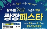 장수군 클릭뉴스2025. 08.07[클릭뉴스] 장수군은 오는 9일부터 10일까지 이틀간 계남면 장수IC 입구 ‘장수 만남의 광장’에서 ‘장수몰 with 광장페스타 시즌1: 맥주를 개최한다. 이번 행사는 장수군과 신활력플러스추진단, 우석대학교 RISE(지역혁신중심 대학지원체계) 사업단이 공동 추진하며 군 먹거리를 활용한 소규모 축제를 통해 생활인구를 늘리고 지역 경제를 활성화하기 위해 마련됐다. 이번 광장페스타는 여름철 온 가족이 함께 즐기며 물놀이·체험·먹거리·농특산물이 어우러진 야외형 테마 축제로 시원한 장수 생맥주와 함께 무더위를 날릴 수 있는 여름 축…