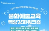 교육 클릭뉴스2025. 08.05[클릭뉴스] 오는 8월 8일(금) 오후 2시 광주문화재단 문화예술교육지원센터는 빛고을아트스페이스 대강당에서 ‘문화예술교육 역량강화 워크숍’을 개최한다. 이번 워크숍은 「2025 예술시민문화예술교육 지원사업」의 일환으로, 문화예술교육 현장에서 활동하는 단체 및 실무자의 실무 역량 강화를 위해 마련됐다. 특히 이번 행사는 문화예술교육 관계자들이 어렵지만 꼭 알아야 할 주제인 ‘보조금 정산’과 ‘브랜딩 전략’을 중심으로 구성되어 실질적인 고민 해결에 초점을 맞췄다. 첫 번째 강의는 한미회계법인 김소영 회계사의 ‘나도 이…