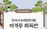 순천시 클릭뉴스2025. 08.04[클릭뉴스]순천시는 청년들의 역사적 소양을 높이고 실질적인 자격증 취득을 지원하기 위해 ‘한국사능력검정시험 자격증 취득반’ 특강을 운영한다고 밝혔다. 이번 특강은 청년들의 인문학적 기초 역량을 강화하고, 국가시험 및 공공기관 채용에서 요구되는 필수 자격 요건을 갖출 수 있도록 실전 중심의 커리큘럼으로 구성됐다. 강의는 8월 11일부터 4주간 총 10회에 걸쳐 순천시 청년센터에서 진행되며. 모집 대상은 만 18세부터 45세 이하 청년 20명이다. 신청은 청년정책114 누리집 또는 청년센터 SNS를 통해 제공되는 QR코드를 통…