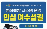 여수시 클릭뉴스2025. 08.04[클릭뉴스]여수시가 도서지역의 치안 사각지대를 해소하기 위해 전국 최초로 범죄예방시스템을 구축하고 8월부터 남면, 화정면, 삼산면 등 도서지역에서 운영을 시작한다. 이번에 도입된 범죄예방시스템은 시시티브이(CCTV) 설치가 어려운 도서지역의 특수한 여건을 보완하기 위한 것으로, 위급상황 시 개인의 스마트폰을 이동형 시시티브이(CCTV)처럼 활용할 수 있는 기능이다. 시스템은 여수시 CCTV통합관제센터와 실시간 연계돼 상황 발생 시 신속한 대응이 가능하다. 사용자가 스마트폰 화면에서 ‘영상전송’을 누르면 현장 영상이 관제센터로…