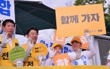 전주시 클릭뉴스2025. 07.28[클릭뉴스]전주시가 완주-전주 통합의 필요성과 당위성에 대한 공감대를 확산시키기 위한 대규모 홍보 캠페인을 위해 시민들과 손을 맞잡고 거리로 나섰다. 시는 28일 이른 아침 호남제일문광장 사거리 일대에서 총 28개 민간단체와 함께 ‘완주-전주 통합 염원을 담은 범시민 출근길 통합 캠페인’을 전개했다. 이날 캠페인에는 우범기 전주시장을 비롯한 전주시 공무원들과 행정, 복지·환경, 경제, 교통, 체육, 농업, 봉사 분야의 민간단체 회원들을 포함한 약 450명이 참여해 출근길 시민들에게 통합의 필요성과 기대효과를 설명했다. 구체적으…