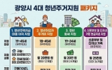 교육 클릭뉴스2026. 04.01[클릭뉴스]광양시가 청년의 안정적인 정착을 돕기 위해 생애주기별 맞춤형 주거지원 정책을 추진하며 ‘청년이 머무는 도시’를 넘어 ‘청년이 정착하는 도시’로 나아가고 있다. 시는 취업 준비생과 사회 초년생부터 신혼부부, 다자녀가정까지 아우르는 주거지원 사업을 통해 청년층의 주거비 부담을 덜고, 지역 내 장기 거주 기반을 마련하는 데 중점을 두고 있다. 광양시 청년 주거정책의 특징은 단기 지원의 국·도비 사업에 시 자체 사업을 더해 청년의 장기 정착을 유도하는 구조를 갖추고 있다는 점이다. 생애주기별 4대 주거지원사업 운영 광양시…