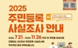 문화 클릭뉴스2025. 07.21[클릭뉴스]남원시는 7월 21일부터 11월 20일까지 2025년 주민등록 사실조사를 실시한다. 주민등록 사실조사는 주민등록사항과 실제 거주사실의 일치 여부를 확인하고 주민등록의 정확성과 효율성을 제고하기 위해 추진하며, 비대면-디지털조사(7월 21일~8월 31일)와 거주지 방문조사(9월 1일~10월 23일)로 이루어진다. 비대면 조사는 조사 대상자가 주민등록 주소지에서 정부24앱에 접속하여 사실조사 사항에 응답하는 방식으로 진행된다. 방문 조사는 비대면 조사 미참여자 및 중점조사 대상 세대를 대상으로 실시한다. 중점조사…