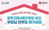 광주광역시 클릭뉴스2025. 07.21[클릭뉴스]광주광역시는 고향사랑기부제를 활용해 시민이 체감하는 돌봄 복지 실현을 위해 2개의 지정 사업 모금에 나선다. 고향사랑기부제 지정사업 모금은 기부자가 미리 정해진 자치단체의 사업 중에서 본인의 기부금이 사용되기를 원하는 사업에 직접 기부할 수 있는 제도이다. 이번에 추진하는 지정 사업은 ‘스마트 부모님 안부확인 서비스’와 ‘따순광주 범죄피해자 일상회복 서비스’로, 기부금 8000만원 모금을 목표로 오는 12월31일까지 진행한다. ‘스마트 부모님 안부확인 서비스’는 타지에 거주하는 기부자가 고향에 계신 부모님의 생활 …
