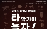 문화 클릭뉴스2025. 07.18[클릭뉴스]고창문화의전당이 카로스 타악기앙상블의 ‘타악기야 놀자’ 공연을 24일 오후 7시30분 무대에 올린다. ‘타악기야 놀자’는 익숙한 클래식과 영화음악을 타악기로 새롭게 재해석한 공연이다. 연주자의 움직임과 악기 배치까지 퍼포먼스의 일부로 활용해 시각적 즐거움을 더했다. 각 타악기의 특징과 소리를 소개하는 시간이 마련돼 생소한 악기를 알아가는 기회가 제공된다. 캐논, 차르다시 등 클래식 명곡부터 ‘캐리비안의 해적 OST’ 등 다양한 영화음악까지 타악기의 두드림을 느껴볼 수 있다. 카로스 타악기 앙상블은 세계 최정상의 …